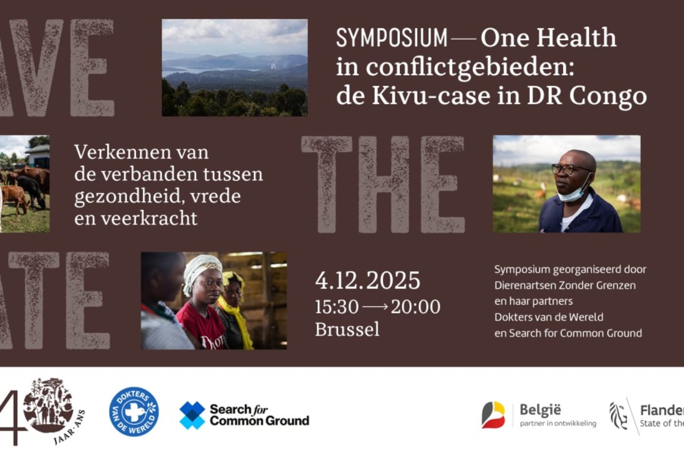 Van harte welkom op ons symposium, georganiseerd door Dierenartsen Zonder Grenzen en haar partners Dokters van de Wereld en Search for Common Ground, waar we uitwisselen over de "One Health"-aanpak in fragiele en door conflicten getroffen gebieden.