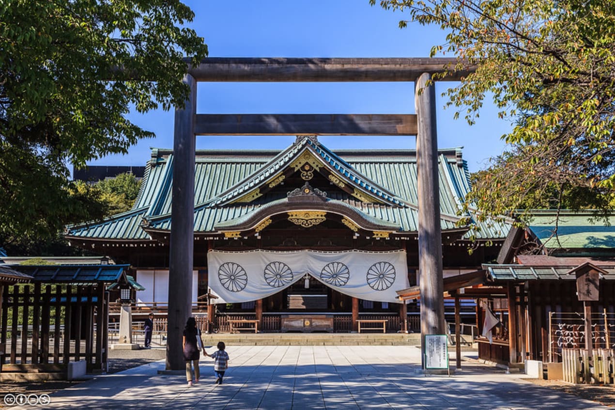Zicht op het Yasukuni-heiligdom in Tokio.
