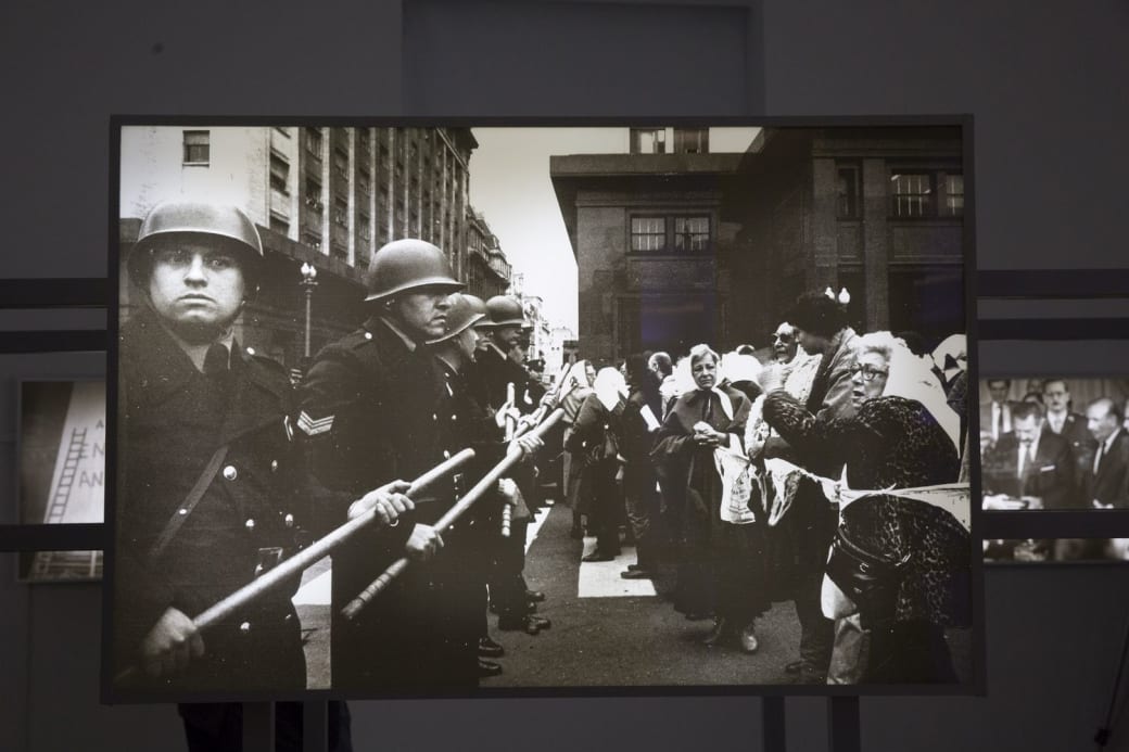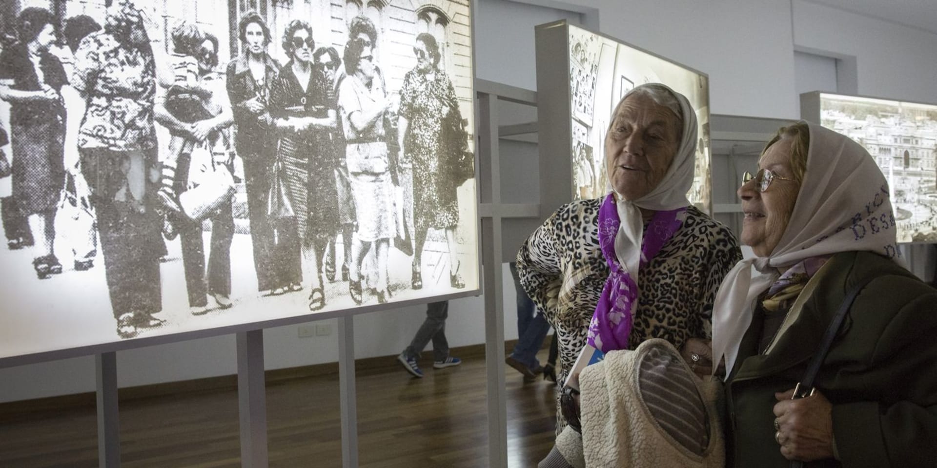 Beeld uit de tentoonstelling ‘El Futuro es Nuestro’ in het Kirchner Cultureel Centrum, Buenos Aires, 8 september 2015. Grootmoeders eisen hun in gevangenschap geboren en afgenomen kleinkinderen terug.