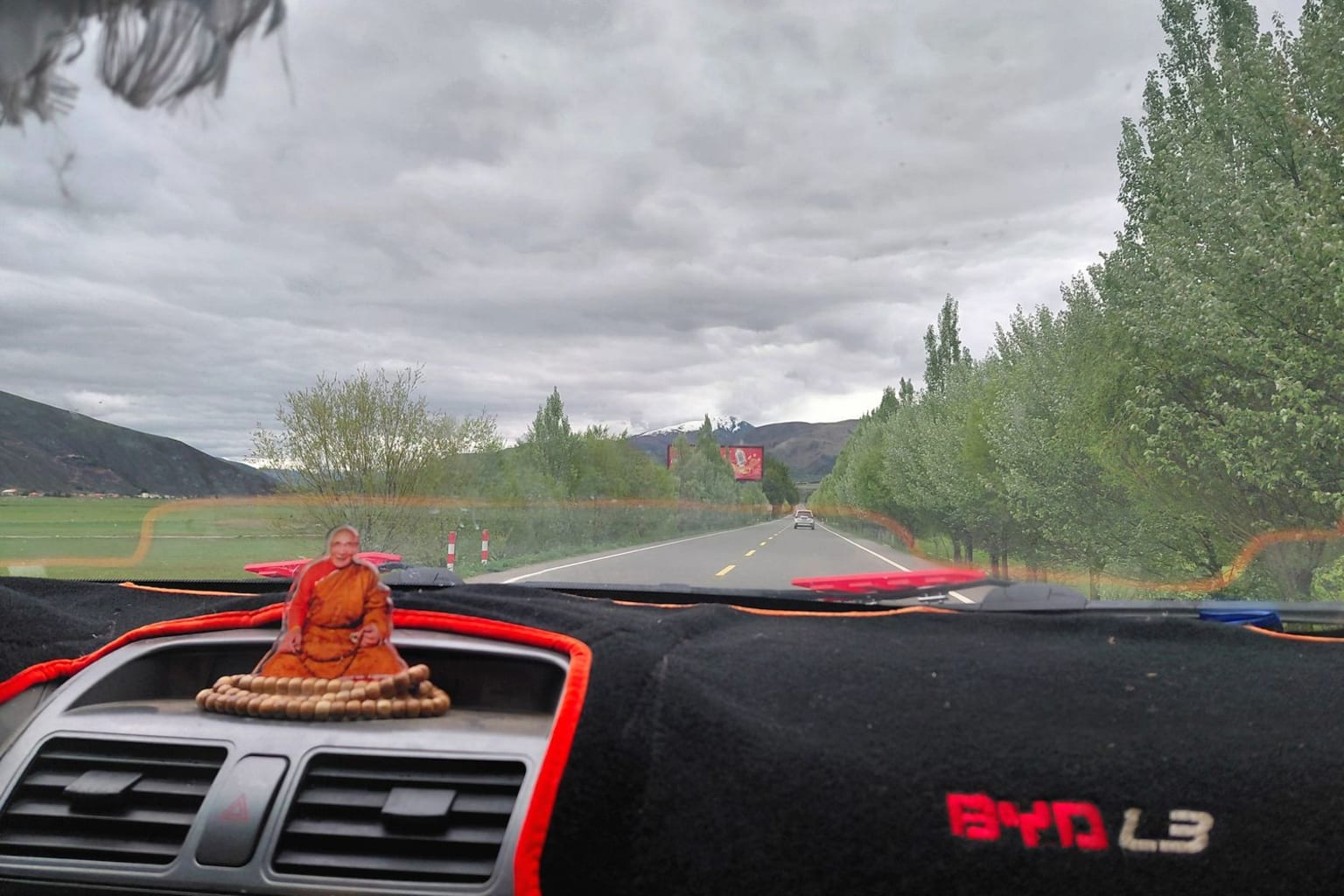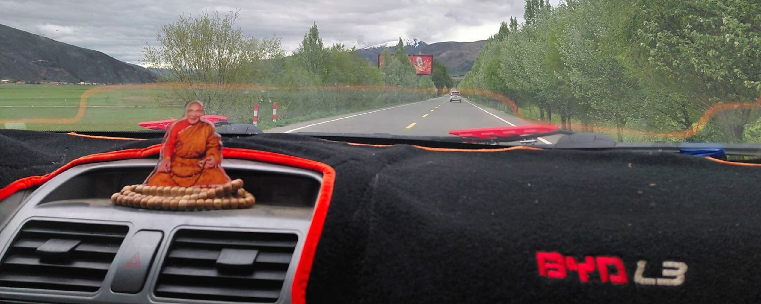 Ik verlaat Derge al liftend. Het lijkt me de beste manier om in contact te komen met locals. Nog geen kwartier later stopt er een auto en ik heb geluk: ik kan de komende uren meeliften met een Tibetaanse monnik die een bevriende monnik van het vliegveld gaat ophalen.