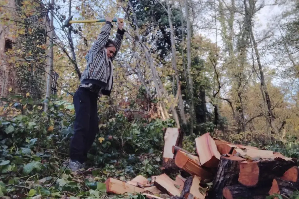 Maar dat lijkt net iets te zijn waar veel mensen, en zeker vrouwen, voor terugdeinzen. Hoe “woke” we tegenwoordig ook claimen te zijn, ‘een kettingzaag hanteren en een kliefbijl, dat is een zaak voor mannen’. Ik geef grif toe: in het begin liet ik die zaken ook als vanzelfsprekend aan mijn man over. Ik hielp hooguit met houtblokken inladen en stapelen. Totdat ik besefte dat ik totaal hulpeloos zou zijn en zou doodvriezen in de winter als ik mijn man niet had. Dus besloot ik ook met dat “zwaar” gereedschap te leren werken, en éénmaal ik het onder de knie had, kon ik er niet genoeg van krijgen.