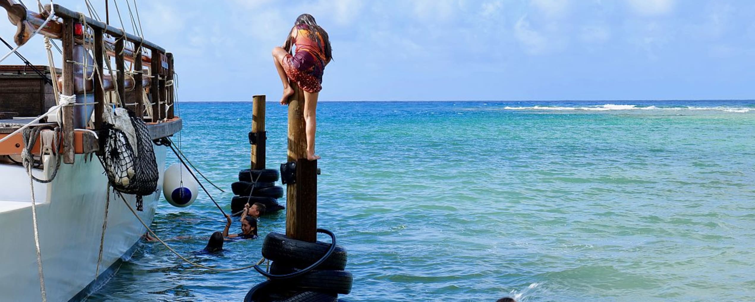 Aan de University of the South Pacific in Rarotonga ontmoeten we Ami (een schuilnaam), één van een dozijn jonge vrouwen die pas een werkweek afrondden met Sharks Pacific. De Amerikaanse ngo loodste hen de zee in en hielp de meesten over hun schrik voor de wijdsheid van de diepe oceaan: ‘we gingen snorkelen, sommigen voor de allereerste keer,’ zegt Ami, ‘en één van de meisjes durfde gewoon niet van de boot in zee te springen. Veel te diep! Ja, dat verbaasde me wel, die reacties. Maar vier dagen later deed ze het uit zichzelf, niemand hoefde nog te helpen’.