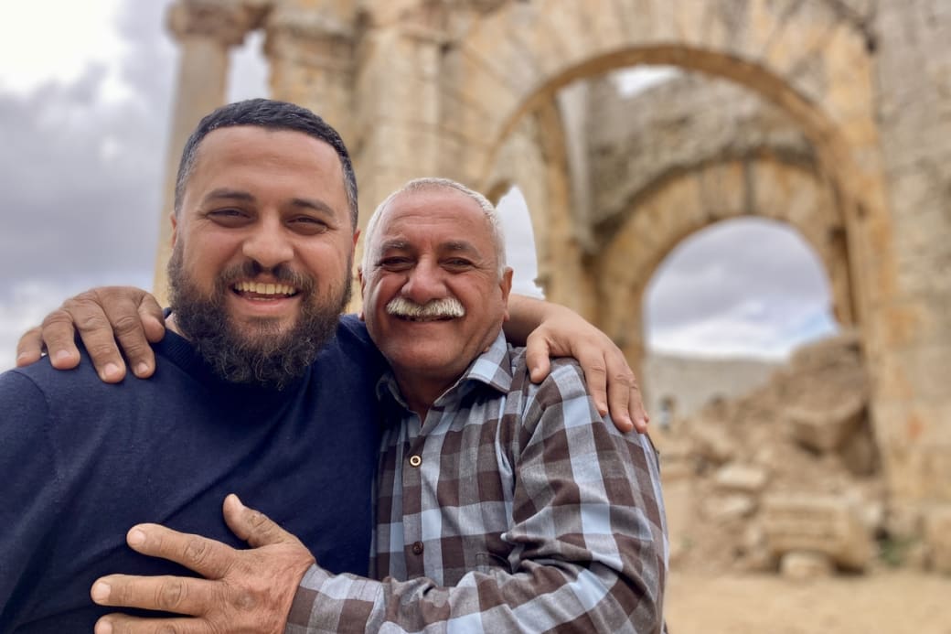 Roni reunited with his uncle Mohammed at Qalat Semaan, the ruins of a 5th-century Byzantine church complex near Afrin.