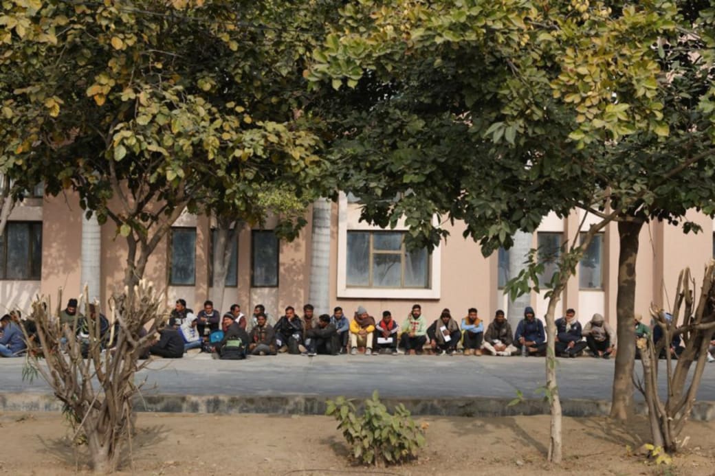 Skilled workers are waiting for a job interview to get started in Israel. The interviews and tests will take place at Maharshi Dayanand University in Rohtak, India, January 2024.