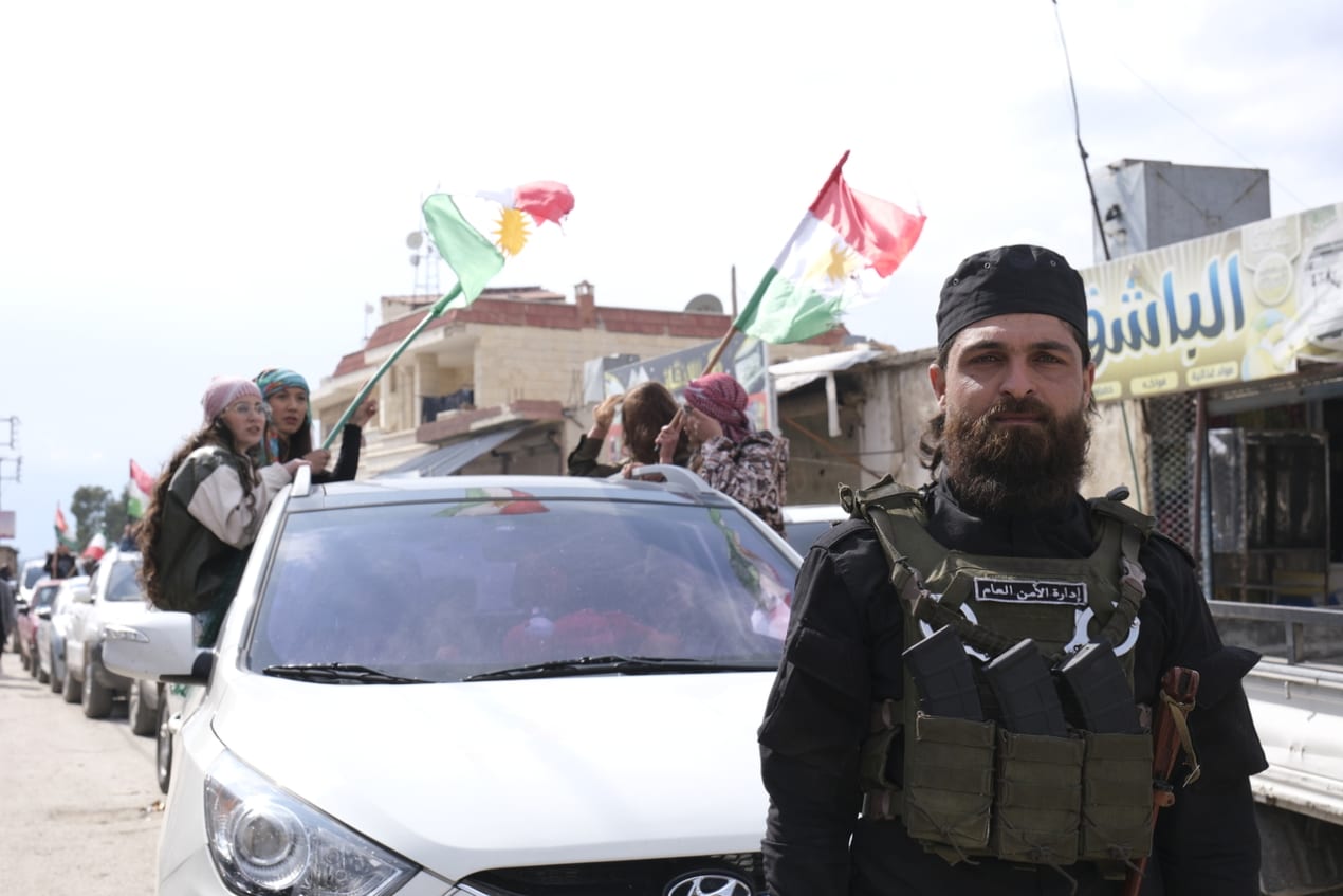 During Newroz in Afrin, a long-bearded Syrian policeman asked our photographer to take his picture. He proudly posed with the Kurdish and the new Syrian flag. Nouri Sheikho believes it sends a double message. ‘Beautiful, that’s what we want. But it’s also the image Al-Sharaa wants to show the world now, while there is still no inclusive constitution. Appearances are not enough.’