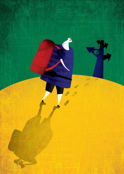 Zei Ernest Hemingway niet ooit over reizen: ‘Het is goed een doel te hebben om op af te koersen bij een reis; maar het is tenslotte toch de reis zelf waar het om gaat’? Reizen is almaar meer een lijfloos, haast virtueel gebeuren geworden. Met gps en smartphone kun je elke hoek en bocht op voorhand scannen en inplannen en behalve om te eten, de liefde te bedrijven of tijdens welomschreven “activiteiten” – een “trektocht”, MTB-tour of stunt- en vliegwerk – gebruiken toeristen hun lichaam nog nauwelijks of niet.