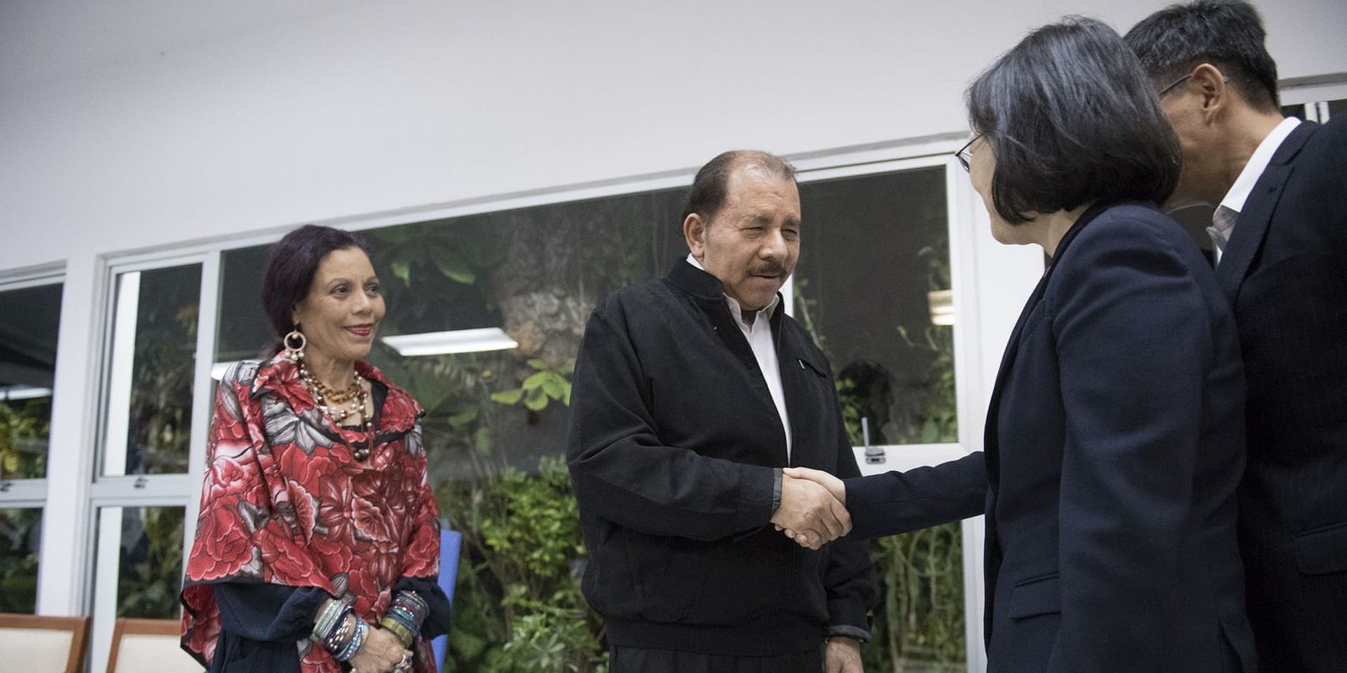Daniel Ortega en zijn vrouw Rosario Murillo ontvangen voormalig Taiwanees president Tsai Ing-wen.
