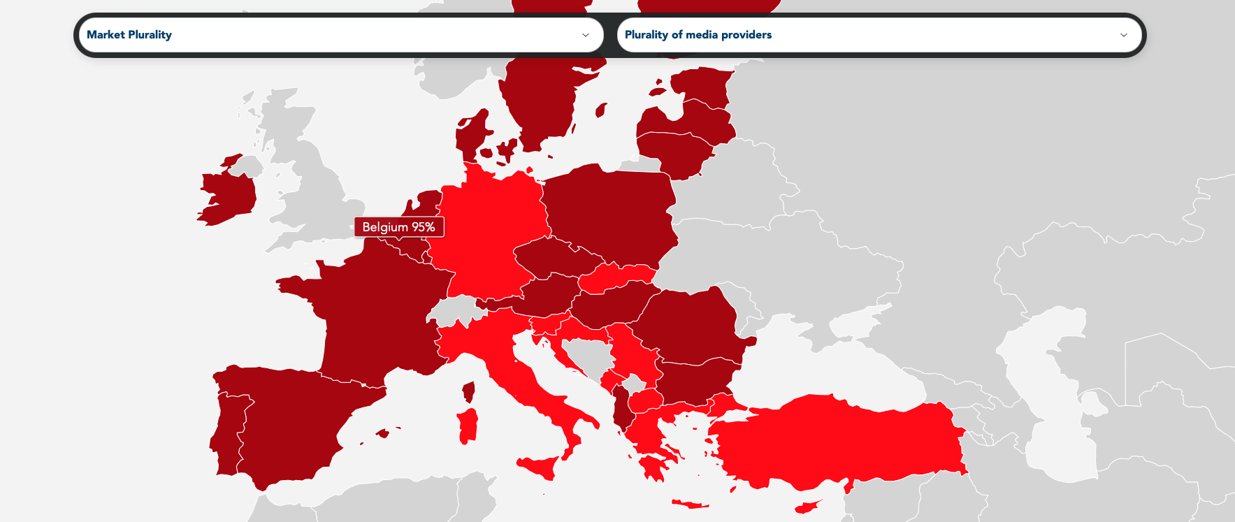 Printscreen van de Media Pluralism Monitor van het Europees Centrum voor Mediapluralisme en Mediavrijheid.