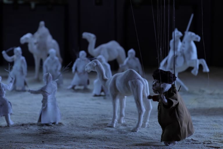 Wie ook maar een beetje vertrouwd is met zijn oeuvre, weet dat die setting eigenlijk niet eens zo vergezocht is. Het werk van kunstenaar en creatieve alleskunner Wael Shawky (1971) laat zich moeilijk in een keurslijf dwingen. Het is hectisch en vitaal, dat zeker. In kleurrijke tableaus lopen mythische figuren, mensen en dieren kriskras door elkaar. Tegelijk zit er een duidelijke structuur in de visuele bombarie.