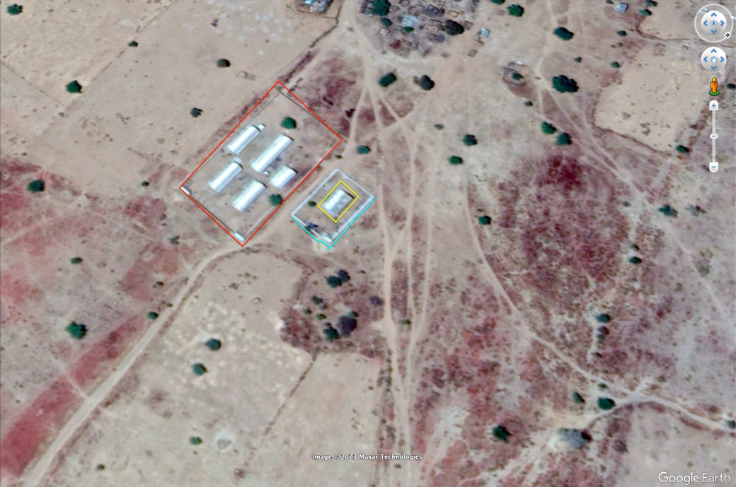 Geolocatie van een aanval op het dorp Mukjar in West-Darfur. © Benjamin Strick
