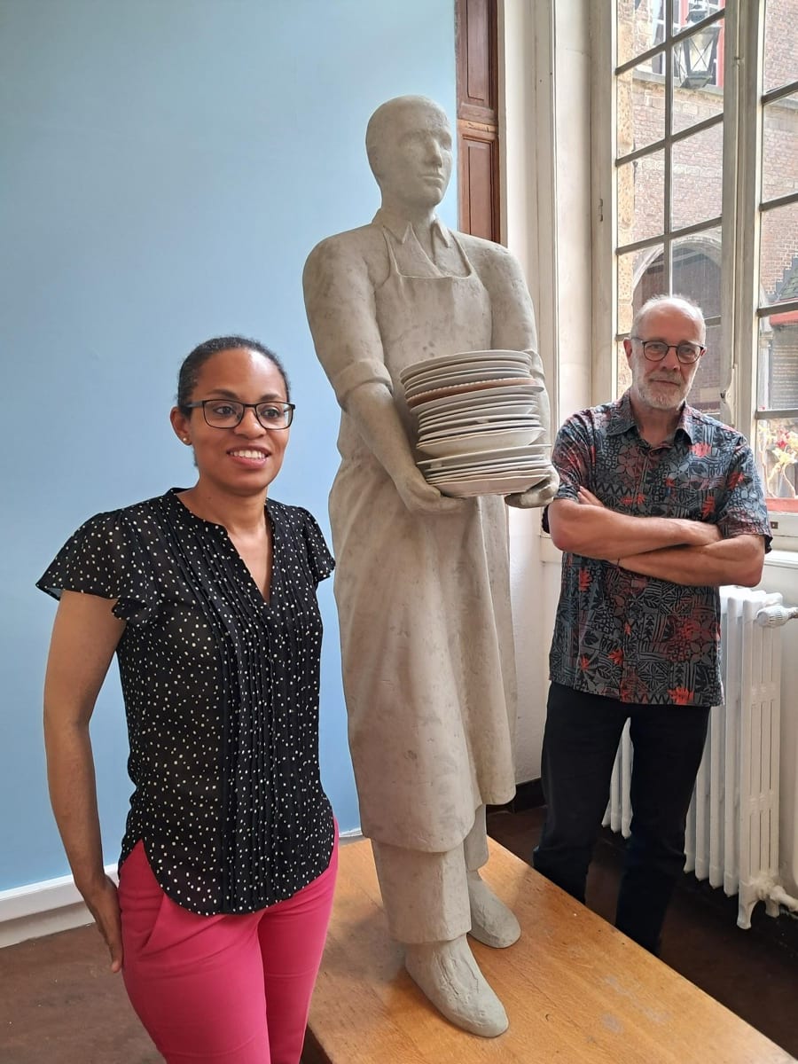 In de refter van het Antwerpse Maagdenhuis staat een wit beeld tegen een blauwe muur. Het werk van de Antwerpse kunstenaar Philip Aguirre y Otegui heet Bordendrager. Het dateert van 2010 en dit schrijft de kunstenaar er zelf over: ‘Het was een periode waarin wereldwijd culinaire topchefs de status en adoratie van rocksterren kregen. Tegelijkertijd lopen achter de schermen tientallen slechtbetaalde en dikwijls illegale hulpjes en plongeurs rond. Ik wou dus een monument voor die anonieme werkkrachten maken.’