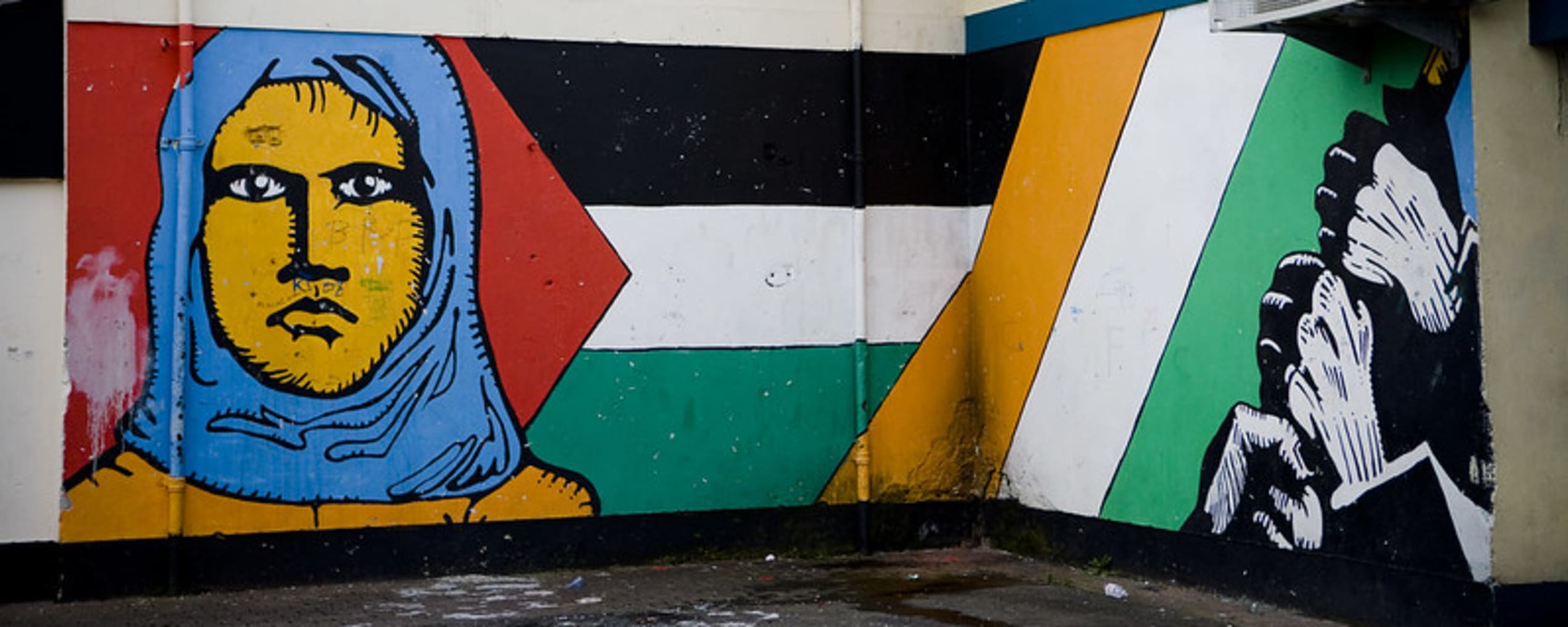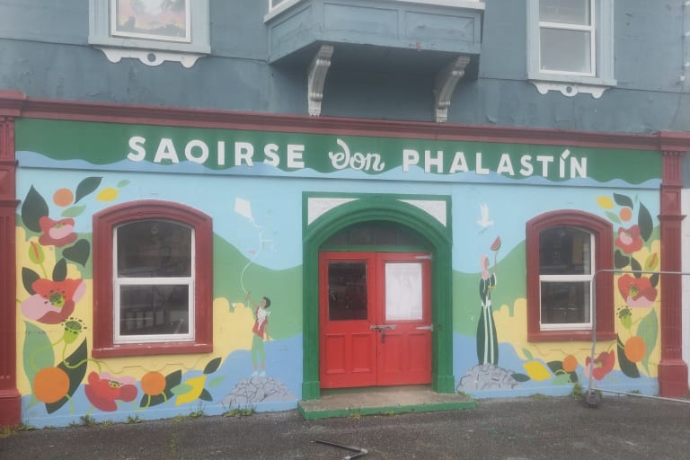 In Belfast sieren al decennialang muurschilderingen die de Palestijnse strijd ondersteunen. Net als in Bantry, nog zo’n klein dorpje aan de Ierse westkust, waar een gevel op het marktplein geschilderd is in Palestijnse kleuren en de oproep Saoirse don Phalaistín: vrijheid voor Palestina.