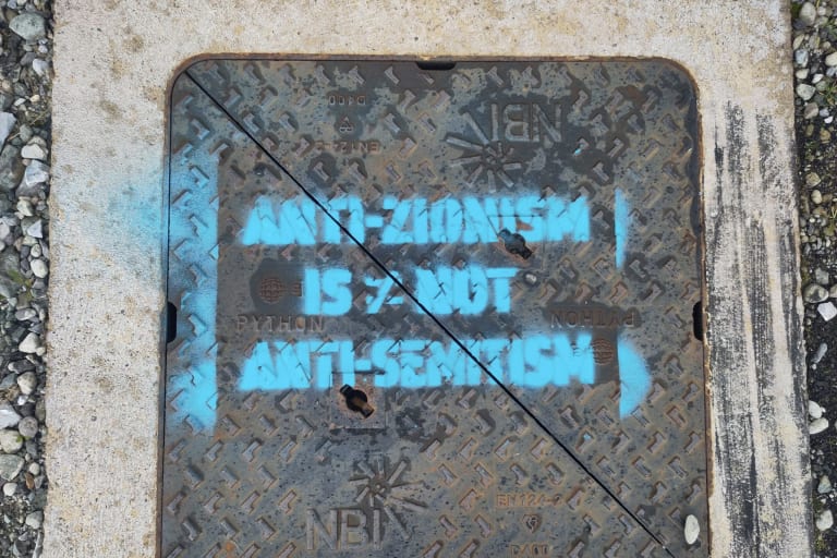 Op verschillende plekken in Ierland zijn opschriften zoals ‘antizionisme is geen antisemitisme’ te zien.