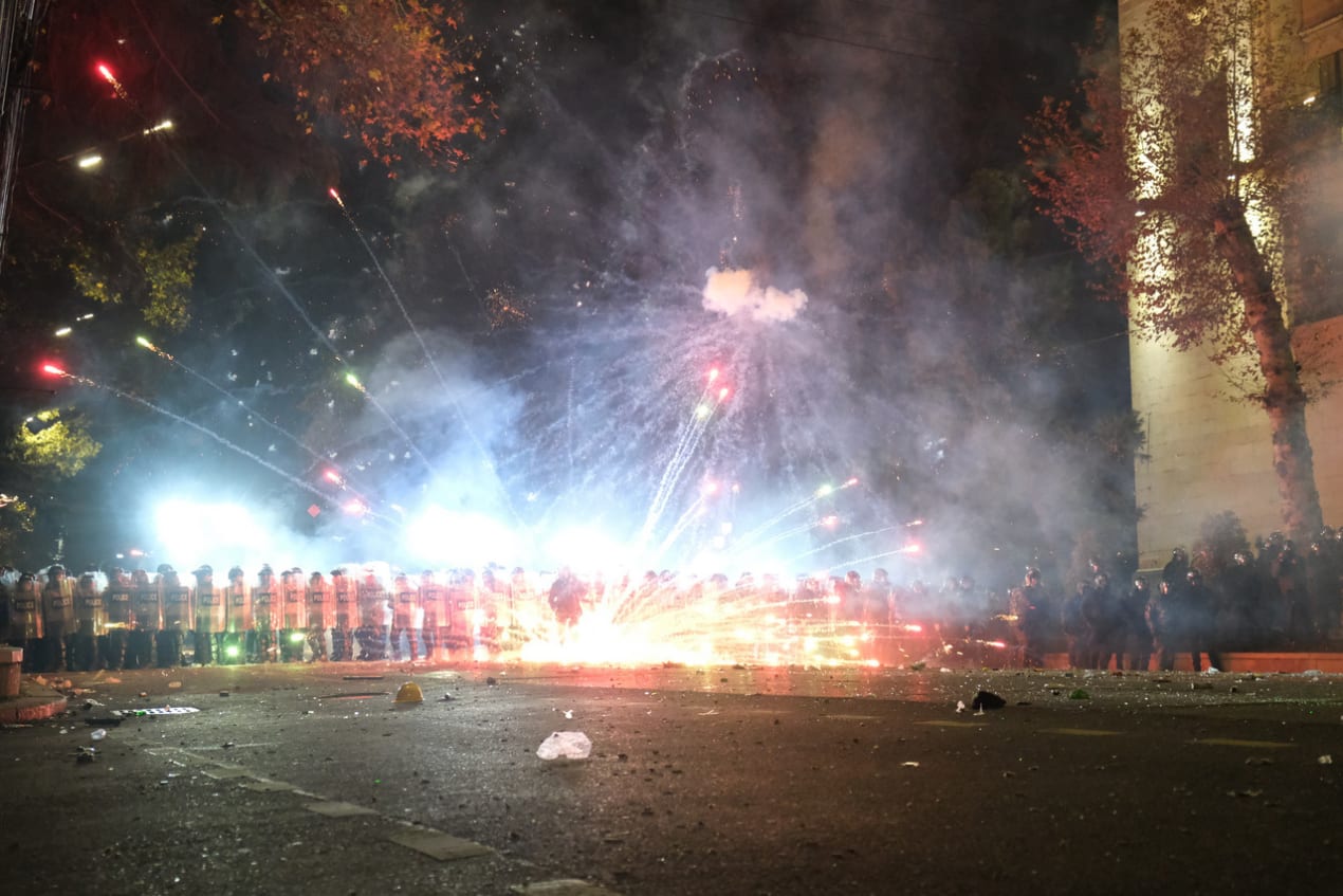 Drie dagen later schortte premier Kobakhidze (Georgische Droom) de toetredingsonderhandelingen met de EU op. De verklaring zond een schokgolf door het land en leidde vrijwel meteen tot spontane demonstraties in grote steden. Het ministerie van Binnenlandse Zaken bedreigde deelnemers aan de protesten met gevangenisstraffen tot vier jaar.