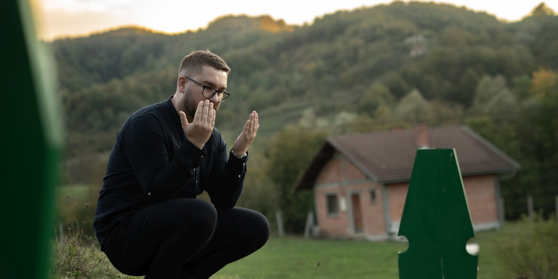 Aan de rand van de Bosnische stad Tuzla baant Nihad Suljić zich een weg, de heuvel op richting een kleine begraafplaats. Er liggen drie vluchtelingen begraven. Bij elk graf richt hij zijn handpalmen naar de lucht in een islamitische gebedshouding. Hij bidt voor de doden die hij nooit heeft gekend.