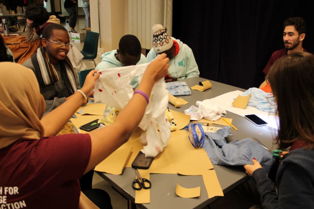 In de namiddag deden de jongeren mee aan een workshop rond upcycling. Ze naaiden telefoonhoesjes van oude kleren. Voor de meesten was het een nieuw gegeven. Maar ze gaan het zeker onthouden. ‘In de toekomst gaan we nu denken: we kunnen dit materiaal ook gebruiken om een zakje van te maken!’