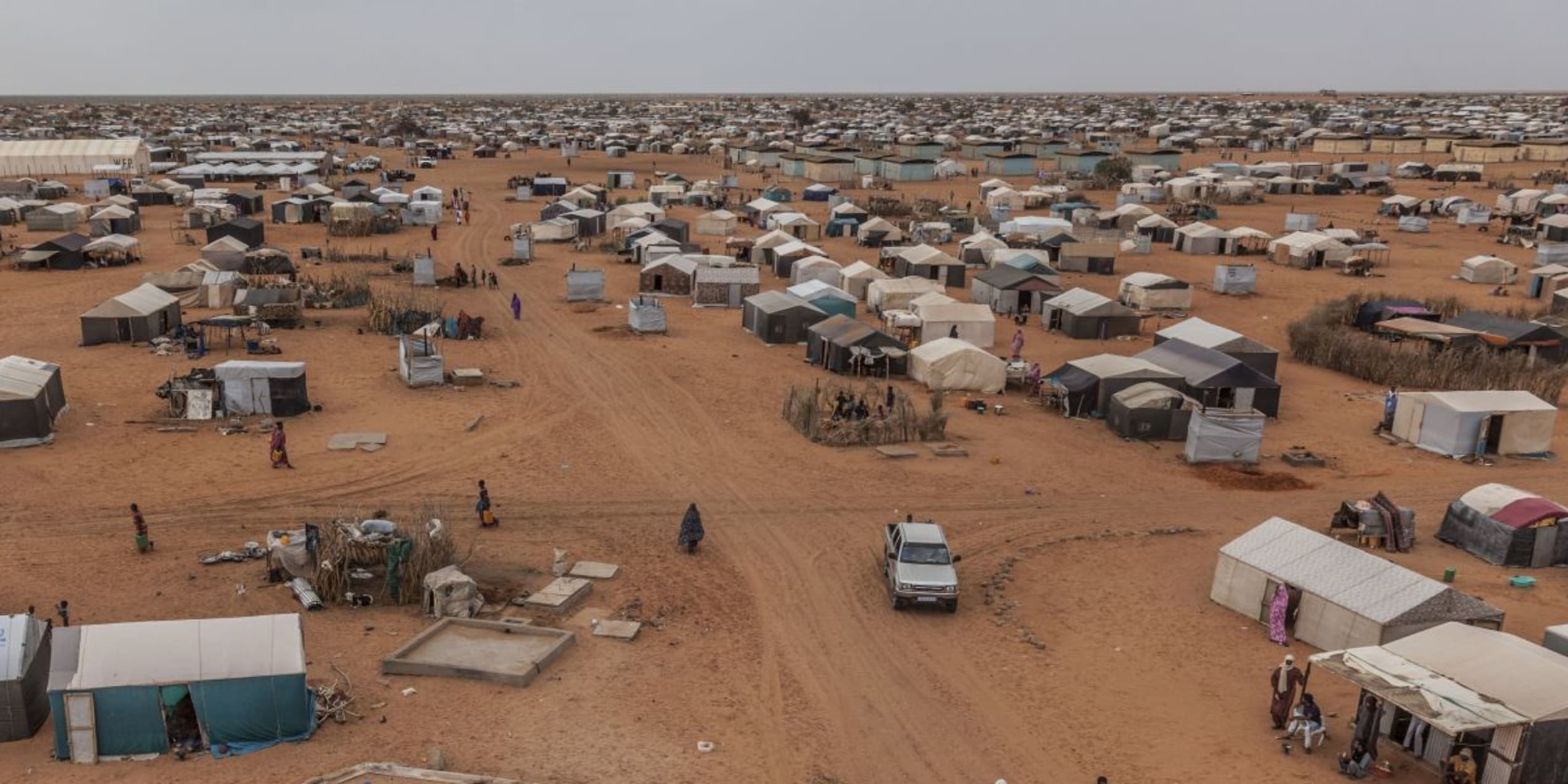 Vluchtelingenkamp Mberra in het oosten van Mauritanië. Een beeld uit 2019, toen het kamp al 41.000 bewoners “huisvestte”.