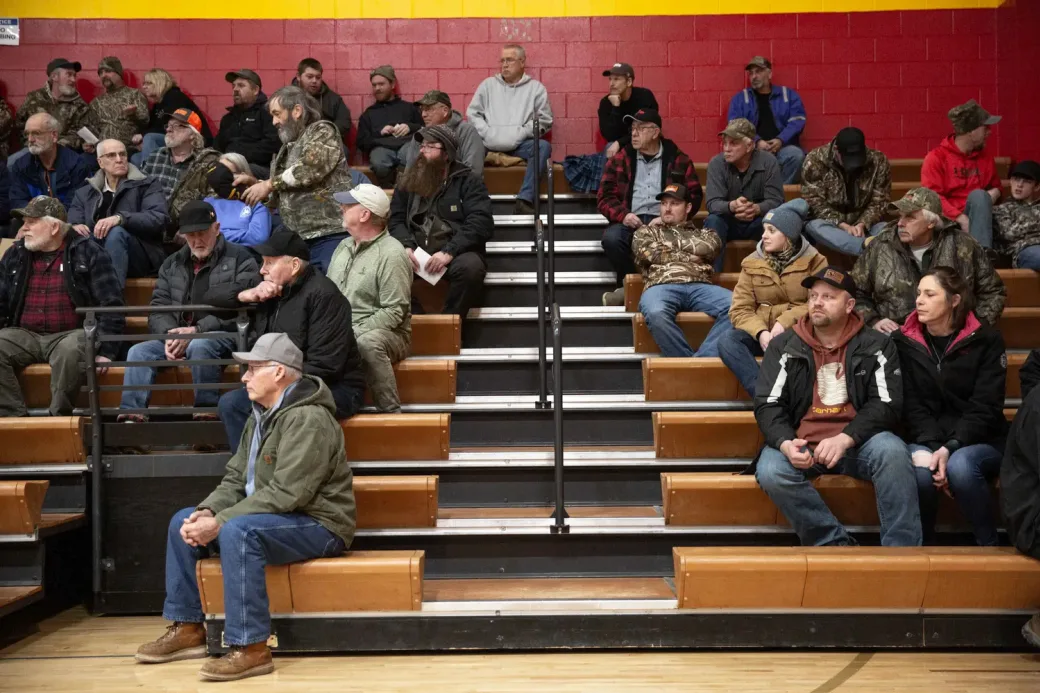 In een lage sporthal aan de rand van het stadje Ely, verlicht door tl-lampen en Amerikaanse vlaggen, verzamelen zich 250 mensen voor een bijeenkomst van Hunters for Hunters. De actiegroep van jagers en sympathisanten ontstond uit frustratie: over dode kalveren, geweigerde schadevergoedingen en beleidsmakers die ‘te ver weg wonen om de werkelijkheid te begrijpen’.