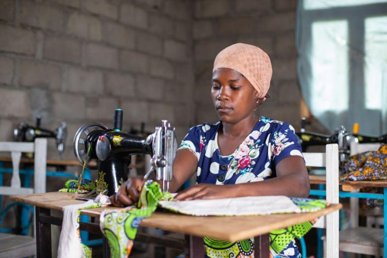 Een van die vrouwen die les volgt in het centrum is Aliance Moise (23). Ze heeft drie kinderen, een van hen brengt ze mee naar de naailes. Ze leert er kledij en zakken maken, die ze op de lokale markt kan verkopen.