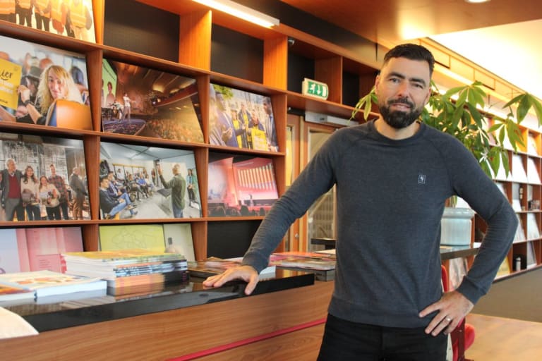 Wethouder Casper Gelderblom in zijn werkkamer.
